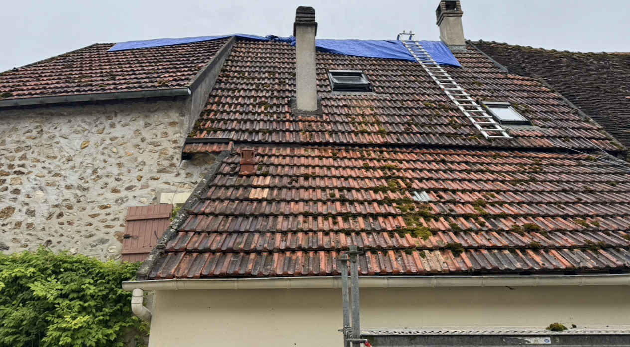 Rénovation d’une toiture complète, remplacement de toute les tuiles de pays ainsi que les bois isolation par laine de roche